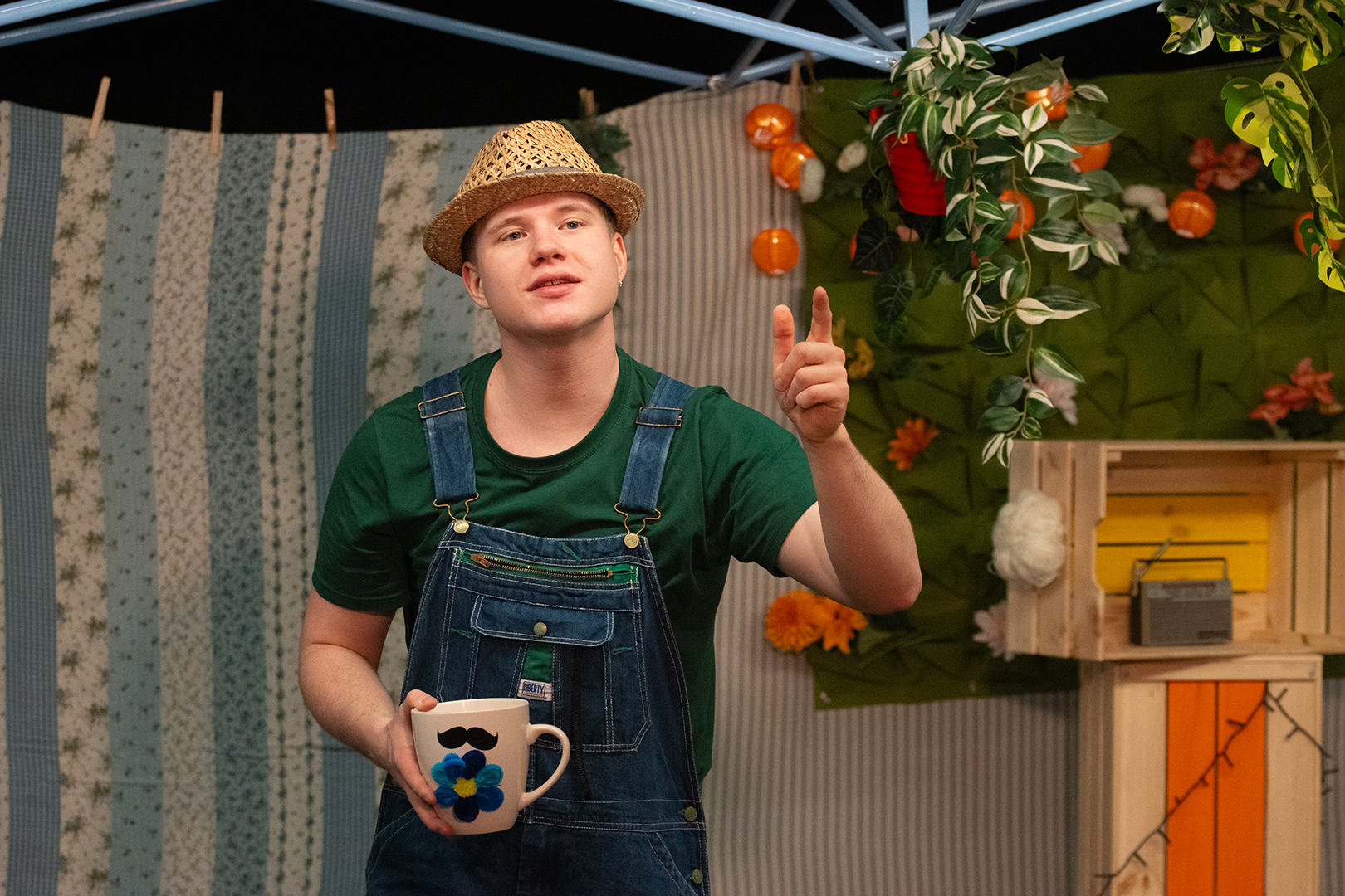 Új babaszínházi előadásunk helyszíne egy szépen gondozott kert, szereplői pedig a kert szorgalmas gazdája és egy titokzatos lény, aki időről időre felforgatja a rendet, rumlit és földkupacokat hagyva maga után.